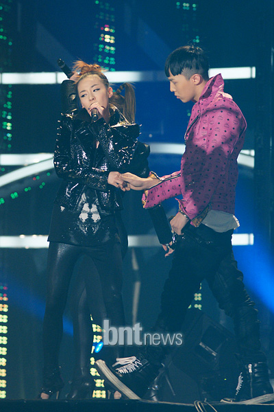 wow~! Dara-unnie is so smexy in that outfit..love it~! if that is a joint stage of 2NEBANG..where are the other members?? TOP-oppa!! where are you? kekek~! the skinship of DARAGON is…so..cute~! 🙂 BTW are they gonna perform HELLO also?