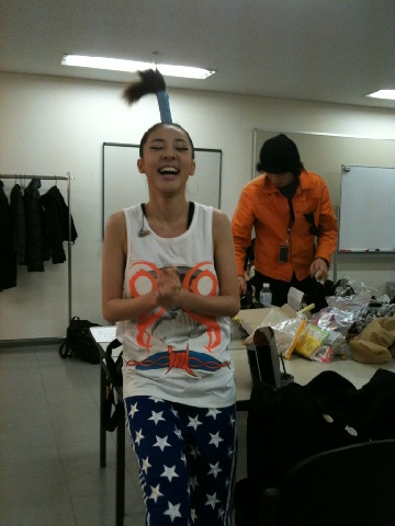 The make up teacher tried to make the game to decide who would go first! I play really quickly first and chose the first point and was the first up…dundun!!!ㅠㅠ Why oh why am I first… And why did they take a picture without my hair..I want to take a selca picture with my ‘palm tree’ hair…ㅠㅠ Unpleasant Daraㅋ