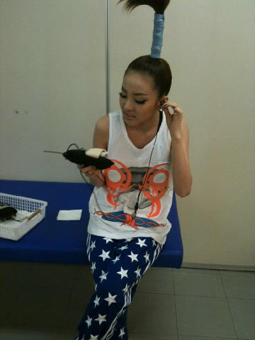 Dara’s getting ready before an appearance on stage! hehe and she’s asking if she looks professional lol! Such a dork 😀 and it seems like she misses her palm tree hair a lot don’t you think?