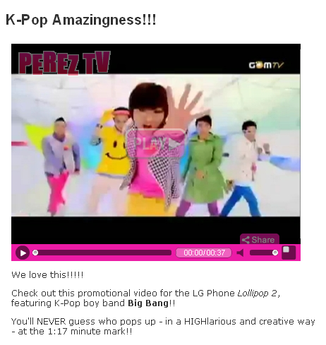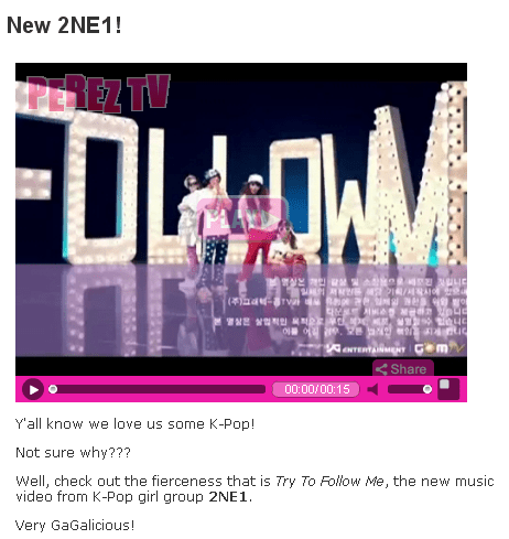 I have a feeling if and when 2NE1 and BB visits the US, perez will most likely watch their shows or maybe write something about their show.