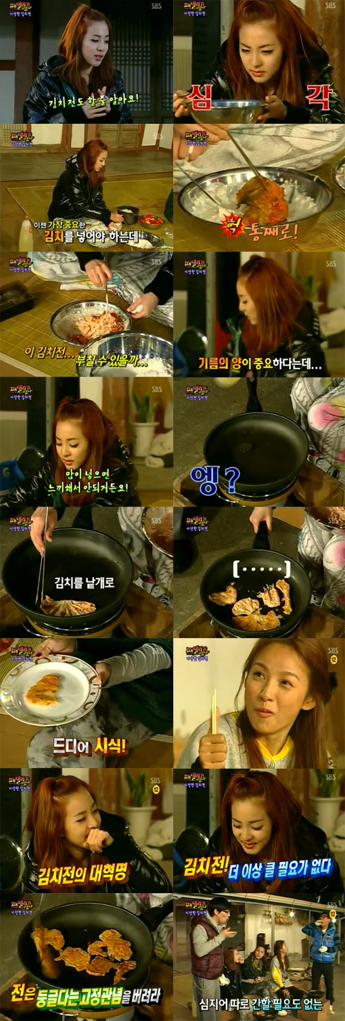 In Family Outing she made kimchi pancakes (Kimchi jun)
