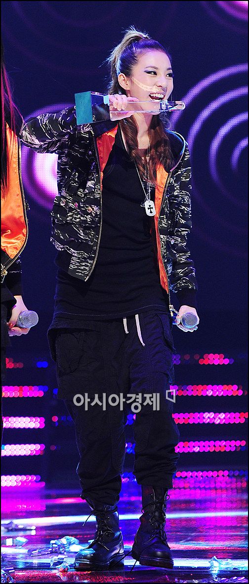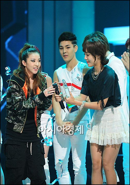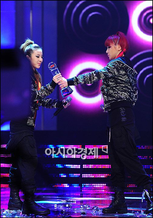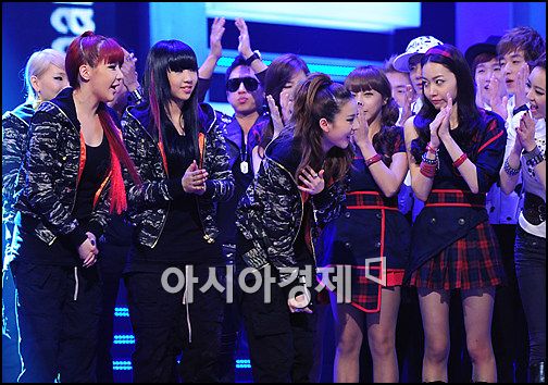I noticed that none of the other groups, girl groups specially, can make a decent eye contact with 2NE1 girls…look at the T-ara girl, she can’t even look at Sandara. Dara on the other hand was trying to make eye contact. They always seem intimidated. but then again who doesn’t feel intimidated by 2NE1’s charisma. 🙂