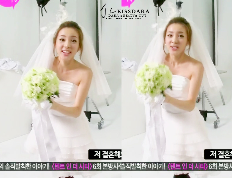 she looks extremely beautiful in that wedding dress.. i keep a photo of her in wedding dress in my phone.. she looks amazing in that photo.. i just love to see dara in simple make-up i feel like simple suits her the most and also simple dresses also..she looks fresh in simple style.. but i still love her no matter what she does.. coz i love her.. choooo!!