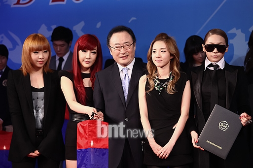 Wow! Goddess Dara is glowing!!! I like her simple outfit and simple make-up, her beauty really shines when she dress so simple. I’m loving it! CL looks like GD in her outfit he-he…Congratulations 2NE1!