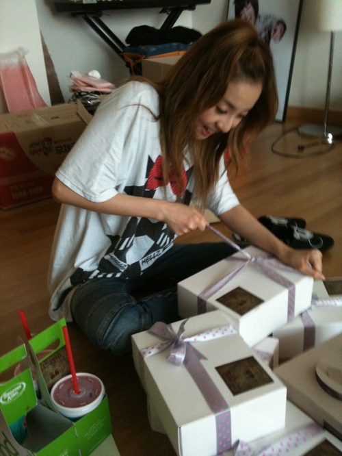 Dara looks soo cute here, she looks like a little kid excited in opening her presents! 😛