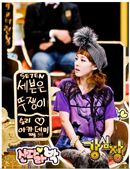 Hahaha! Her sign says Se7en Pimp and Seungri Academy Jjang!