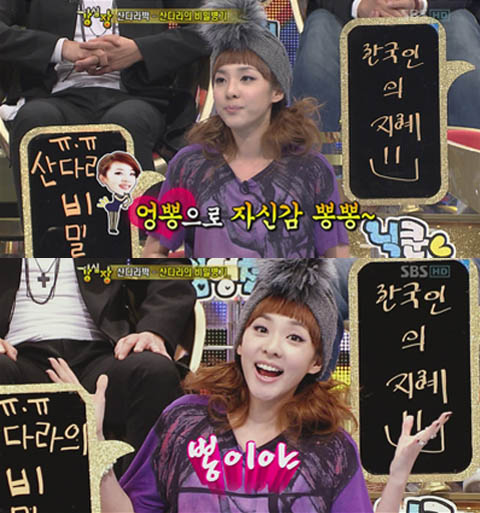 Dara’s really a funny girl, I love her sense of humor. I was laughing so hard when I was reading this topic yesterday in All Kpop then later watched the whole episode of Strong Heart. She has a funny way of relating the story. ^_^