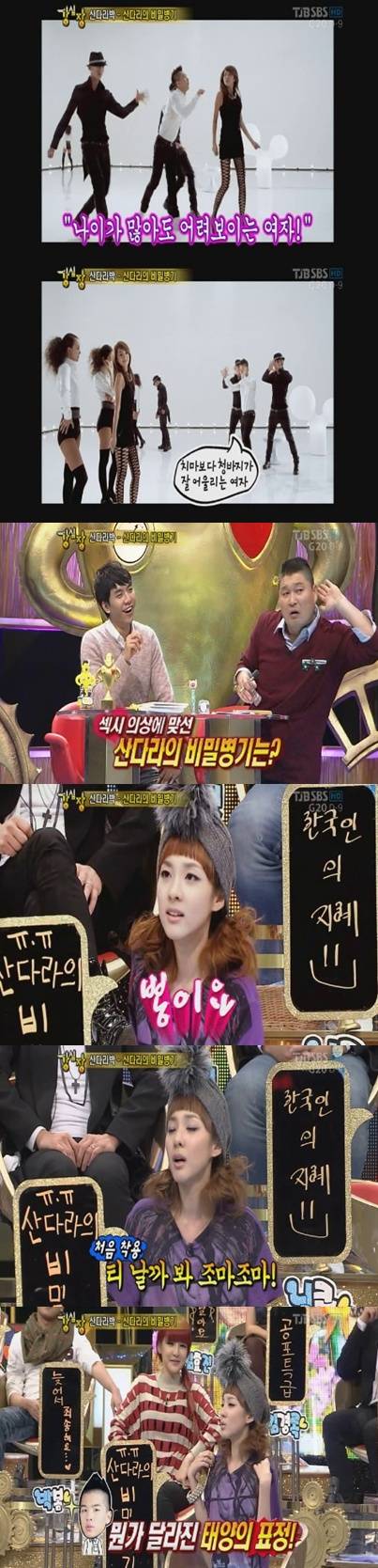 On her guest appearance at SBS Strong Heart, Sandara revealed the secret to her great looking voluptuous body in Taeyang’s I Need a Girl MV, as she confessed, “At the time, I was trying to match the concept of being Taeyang’s partner, so I prepared my own little secret. The secret was butt padding.” The female idol apparently debated between her pride or achieving a great looking body and in the end, decided to wear butt padding to look great.