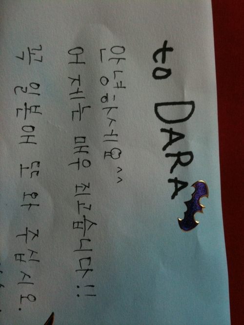 Yes the letter came from someone in the Philippines, the letter sender wrote in Hangul so Dara was very impressed.