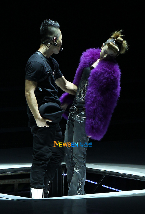 so cute! taeyang holding dara by the waist, dara is holding onto taeyang’s belt (in the 5th pic). i was wondering how they did it. they zoomed out too quickly in the vid. im glad for this photo. dara jjang!!! she sounded great in their performances tonight!