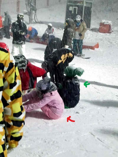 The one that is sitting down~im sure its yb cause i seen him with that outfit before in a photoshoot…gd also wearing the snowboarding outfit from a photoshoot also…