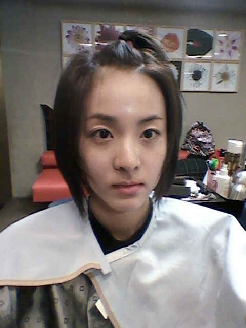 her hair colour at melon is different from this one. this one and her other me2day updates were more black, but at the melon awards her hair was brownyred.. i like her with the short dark hair better (^ this one) it makes her look really young.