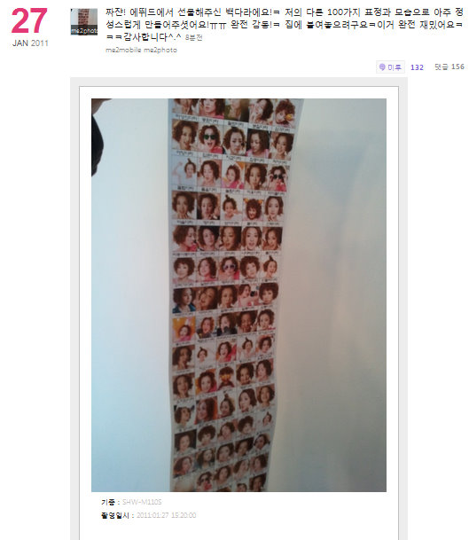 jjanjan! this is the 100 dara etude gave me as a present! my 100 diferent expressions and and my image was made!TT super touched! i stuck this at myhouse.ke this is so interesting kekeke thank you! (Translated by: winggers@DGH)