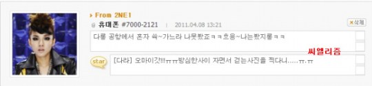 Since that picture of Dara at the airport arriving from Thailand was fan taken (by DC2NE1), she then posted an entry on UFO for Dara to answer.