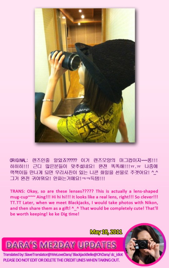 Dont worry cause even dara doesnt post cute images,when it comes to news like who has the prettiest face dara is always included…like last night she was included in arirang pretty face without make up..she and that girl in secret are the only idol star included…..