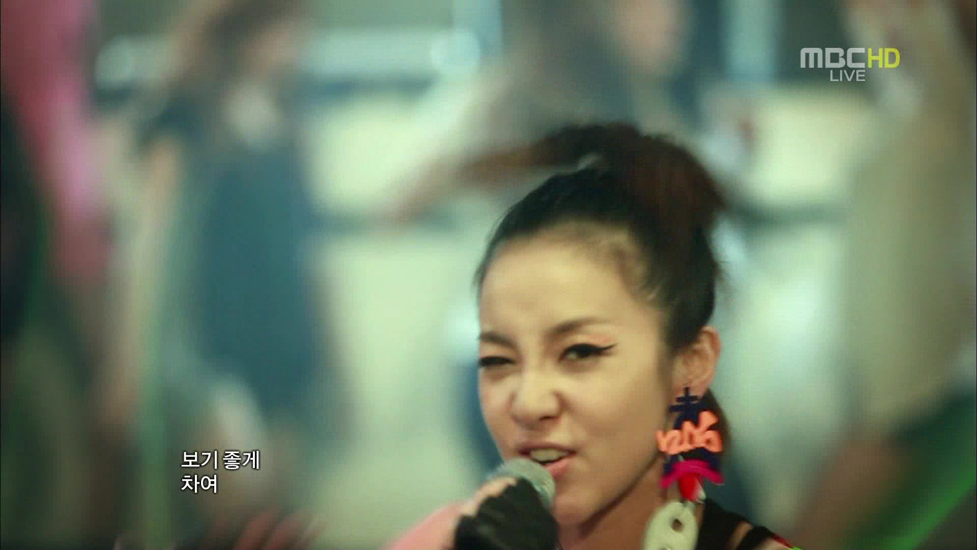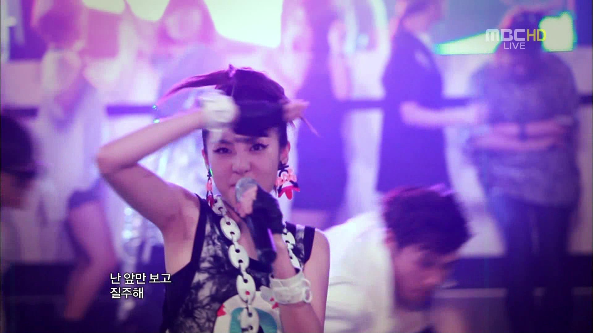 Dara looked really really cute in today’s perf too! I noticed that her outfit is the same as the one she wore for Singapore, which is similar to an outfit she wore for Inkigayo in one of their perfs there, only that her shorts(?) today is green, while in Inki she had it in pink. Kekeke! ^^