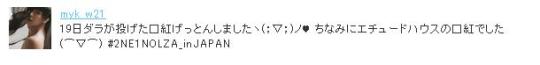 Dang lucky fan! π I was just wondering yesterday if there were fans who were able to catch Dara’s lipsticks when she threw them off the stage. And this post appears. Haha! Lucky lucky fan!