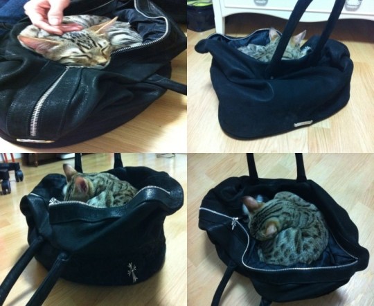 aww.. he is such a cutie..laying inside Dara’s bag..as if he knew she is going out..=P