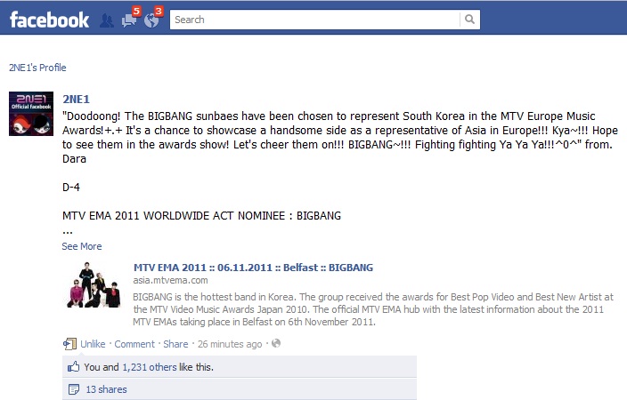 Screencap: Dara Supports Big Bang For MTV EMA 2011!