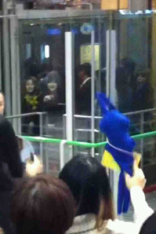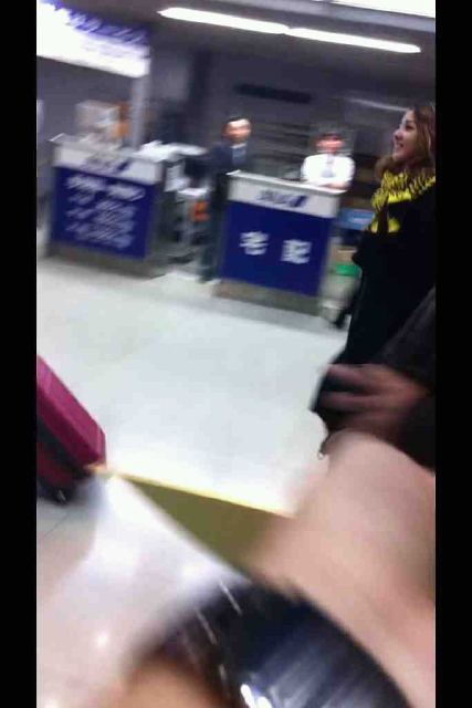 Here’s a picture taken of the girls as they arrived in the airport. ^_^ Hitomi (@tonyaaa1217ton) said that she wasn’t able to take better pics, but Dara saw the Tamtam that she was waving and smiled! So cute, right? ^_^ In the pic, you can see Bom pointing at the Tamtam and Dara smiling. ^_^