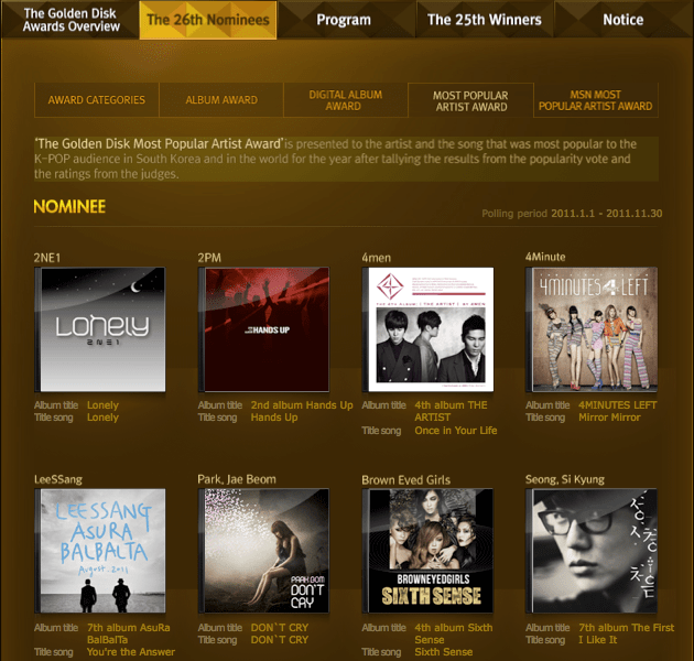 Info: 2NE1 and Park Bom Nominated in the 26th Golden Disk Awards