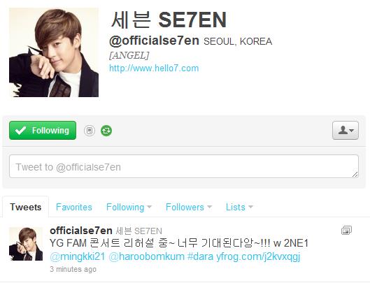 Twitter: Se7en Tweets a Photo of Himself, Dara, Bom and Minzy at the YG Family Concert Rehearsal