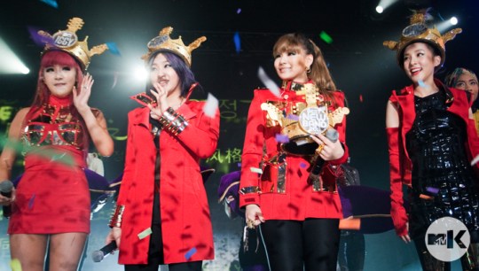 And while we’re waiting for the big reveal of MTV Iggy’s edgy photoshoot with 2NE1 on the rooftop of the swanky Mondrian SoHo, take a look at some of our favorite 2NE1 moments from the Best New Band Concert, from the girls killing it onstage with back-to-back performances of “Fire,” “Can’t Nobody,” “Lonely,” and “I Am The Best,” to receiving their golden Best New Band crowns in the final moments of that spectacular night: