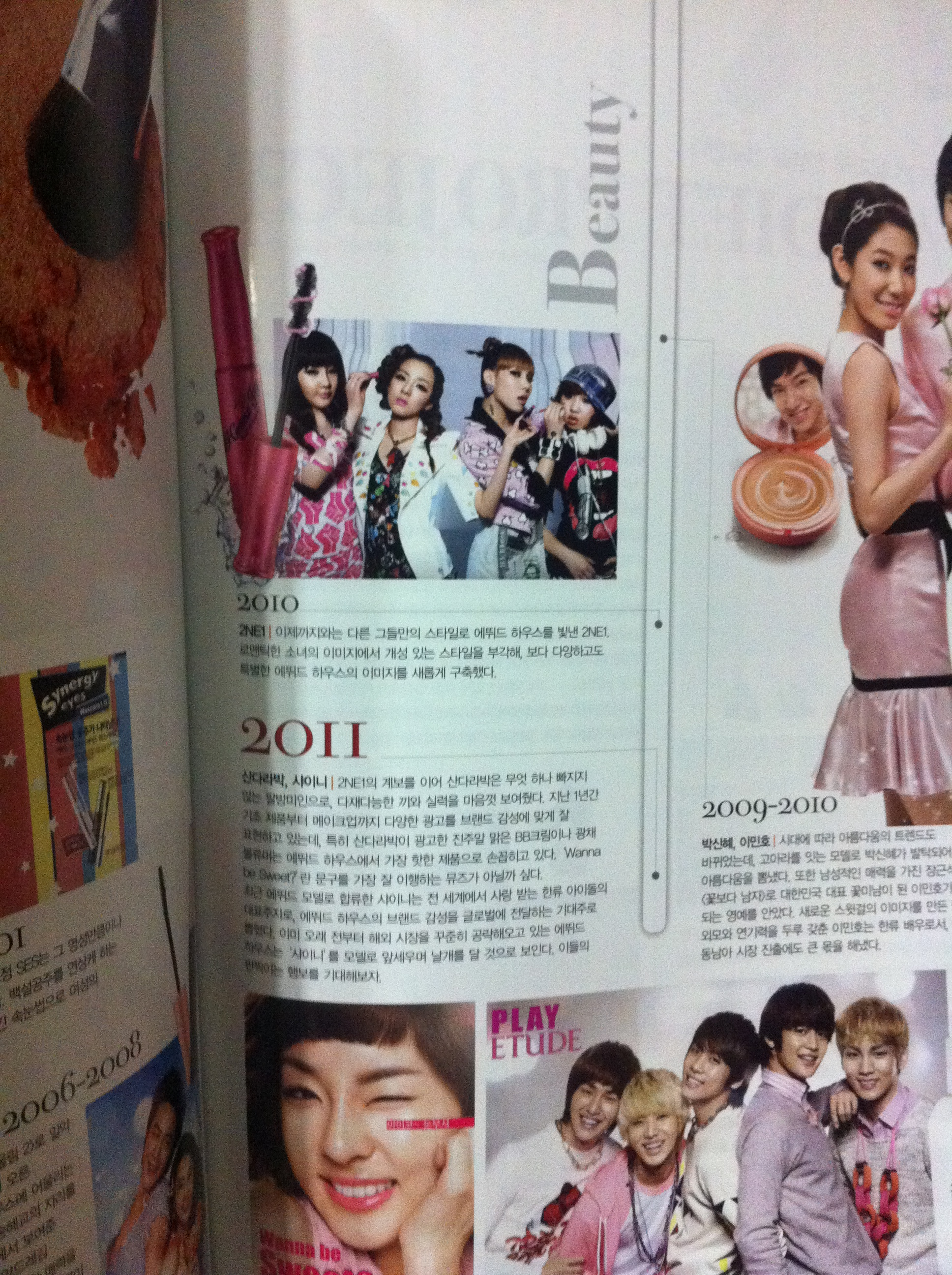 The magazine also features the brand endorsers of Etude! Check out the latest endorsers page, mentioning 2NE1, and the current endorsers, Dara and SHINEE!