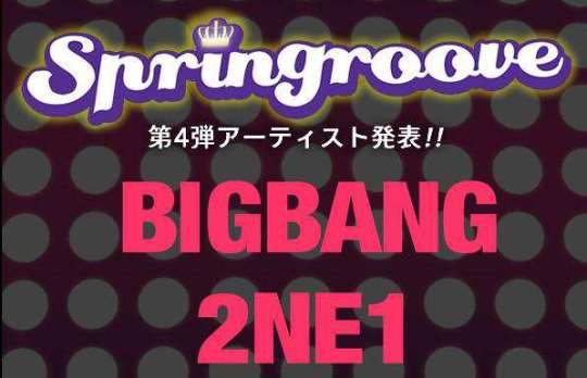 Idol groups Big Bang and 2NE1 will take part in Japan’s largest R&B and Hip-Hop Festival, SPRINGROOVE. SPRINGROOVE revealed the lineup for the upcoming festival on the 28th and introduced Big Bang and 2NE1 as one of its main lineups.
