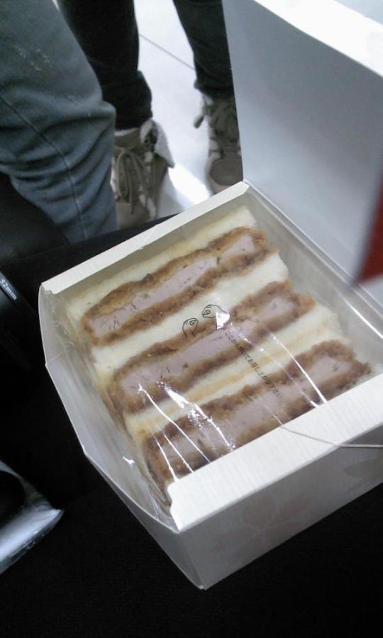 The box says, “PORK SANDWICH! IT’S DELICIOUS, PLEASE ENJOY IT!”