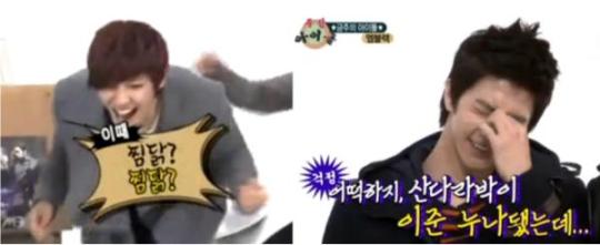 The last question had something to do about Dara’s me2day update and what she was eating. The boys were asked what Dara was eating during her Jan. 15th me2day update. And Joon got it right! Joon said, “Jjimdak! “Jjimdak!” Now, I don’t know how Joon got this correctly but he did! Hurray for Joon!