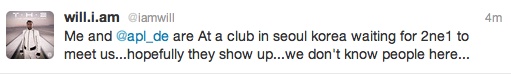 Twitter/Photos: Will.I.Am and 2NE1 Party It Up in Seoul