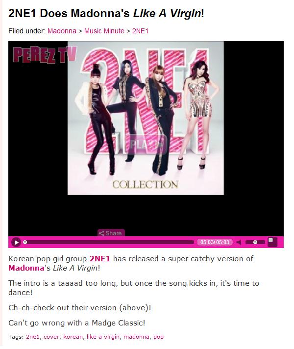 Cap: Perez Hilton Blogs About 2NE1’s “Like A Virgin” Cover