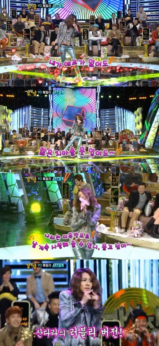 When MC Lee Seunggi asked her if she prepared the stage herself, Sandara Park replied, “Yes, I practiced hard for it. I practiced for this stage more than I ever practiced for Inkingayo performances,” which resulted to even more laughter from the studio audience.