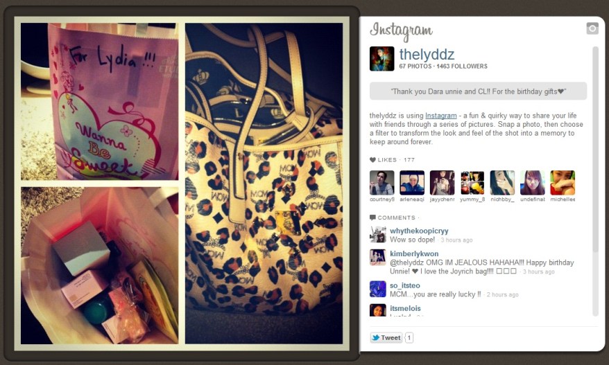 cl gave her a freaking mcm bag! so jealous!!