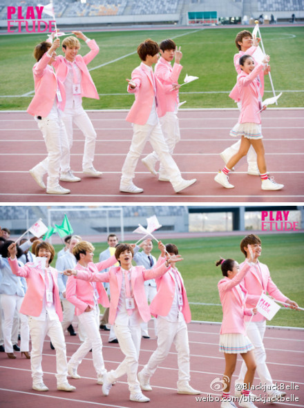 Photos: Adorable HQ Pics Of Dara And SHINee In Their Pink Uniforms For Etude!