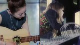 Dara composing a song with her guitar in hand, while Bom records a song! ^^