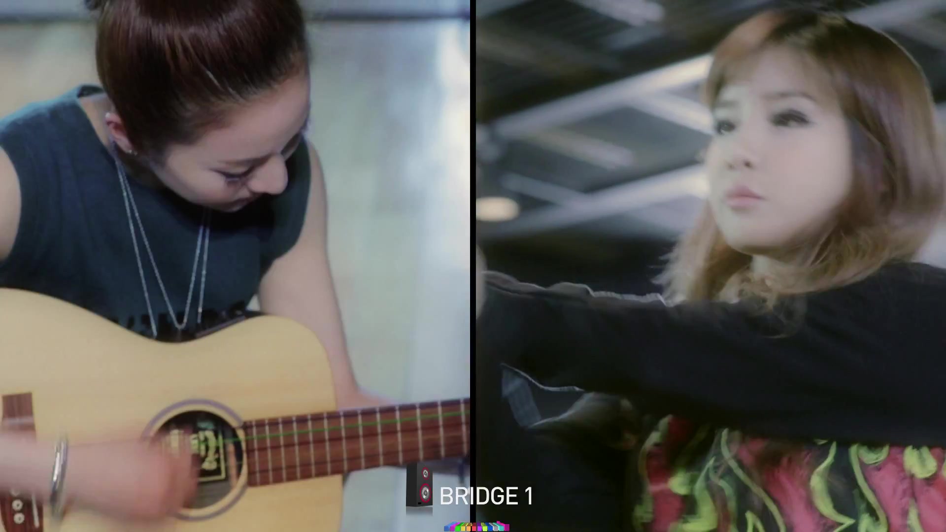 Dara composing a song with her guitar in hand, while Bom records a song! ^^