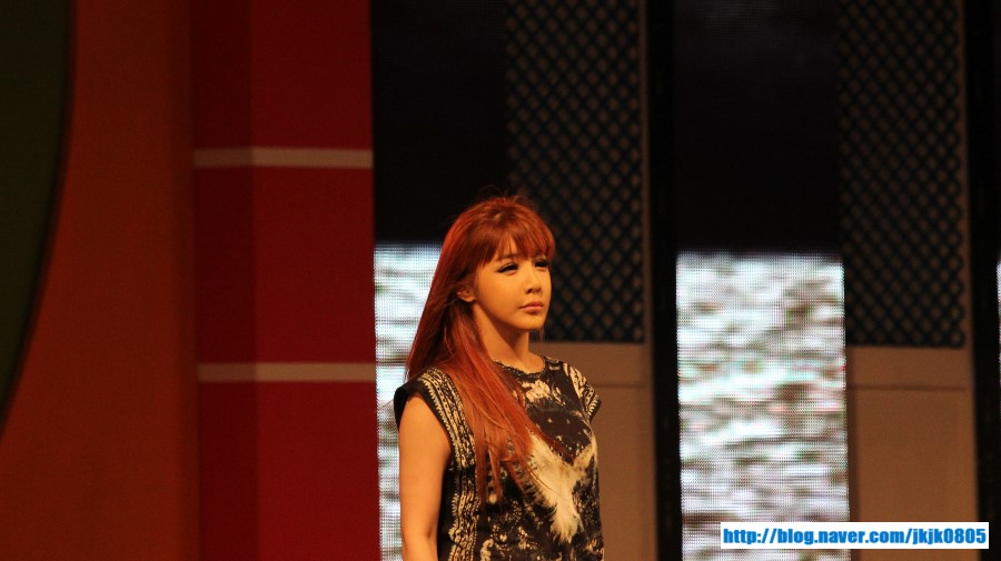 Earlier, the girls performed at Silla University, Busan. I wonder if Dara visited her birthplace or her relatives in Busan. To those who don’t know, Dara is a Busan girl! Kekeke! Her outfit reminds me so much of 2NE1’s “I Don’t Care” days. I miss her style during those times so much! Yay! Her hair is part down and she is wearing high waisted pants!