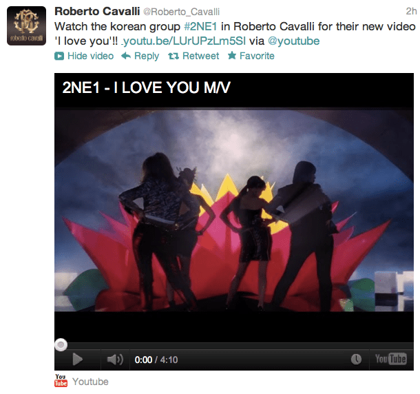 Twitter/Caps: Roberto Cavalli Tweets About 2NE1’s Fashion (Shows Off Dara’s Clothes)