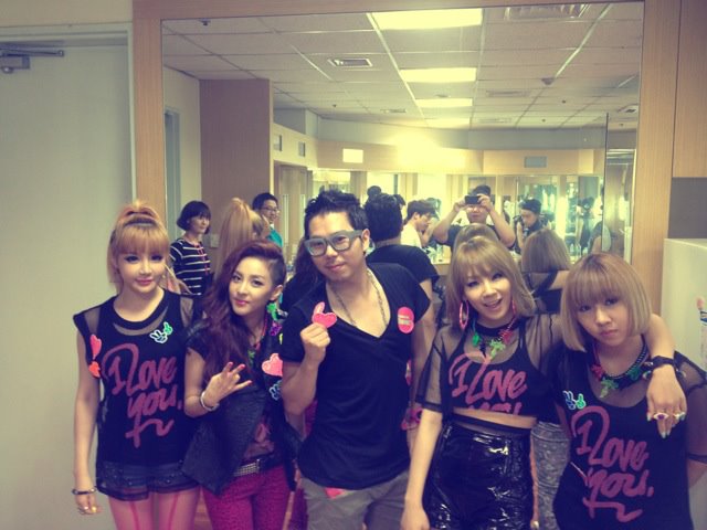 Photo: 2NE1 with Lee Hyosup Backstage at Etude Pink Play Concert 2012
