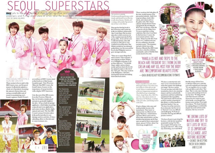 Scan: Dara and SHINee for Etude House Featured in Philippines’ Meg Magazine, August Issue