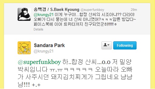 Twitter: Dara and Baek Kyoung’s Cute Teasing of Her Last Name ^^