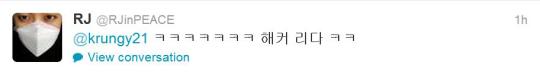 RJinPEACE: @krungy21 ㅋㅋㅋㅋㅋㅋㅋHacker leader ㅋㅋ