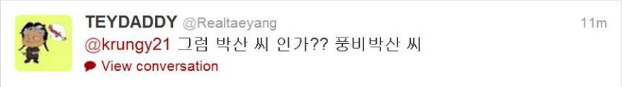 Twitter: Taeyang Asks Dara: “Is Your Name San-Shi?” Dara: HEOL!