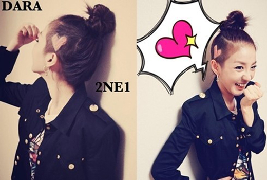 Sandara Park became an issue as she makes a heart shape on her half-shaved head.