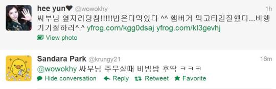 Comments on: "Twitter: Dara (@krungy21) to Hee Yun – “While Ssabu-nim is asleep, quickly eat bibimbap…”" (4)