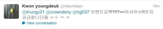 DEUKKIE: @krungy21 @crowndony @hg537 Event?!?!!? >< Bring it on. What can it be? I’m curious ㅠㅜ ㅋ ㅋ