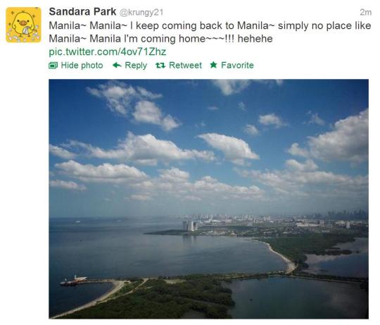 Awwwwwwwww! Dara just tweeted the lyrics to a really popular Filipino song about always coming home to Manila! She really loves the Philippines and still considers it her home! ❤
