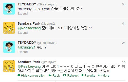 Twitter: Dara Confuses Taeyang By Calling Him “Hyung” – Fighting~!